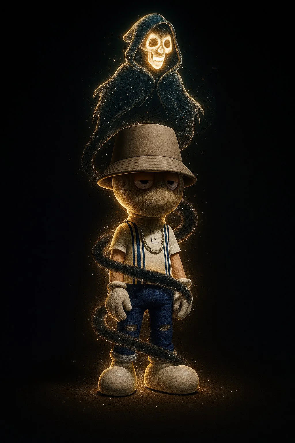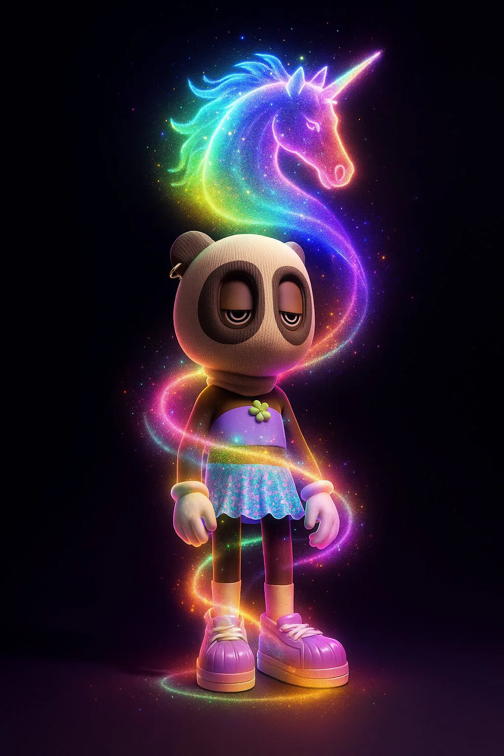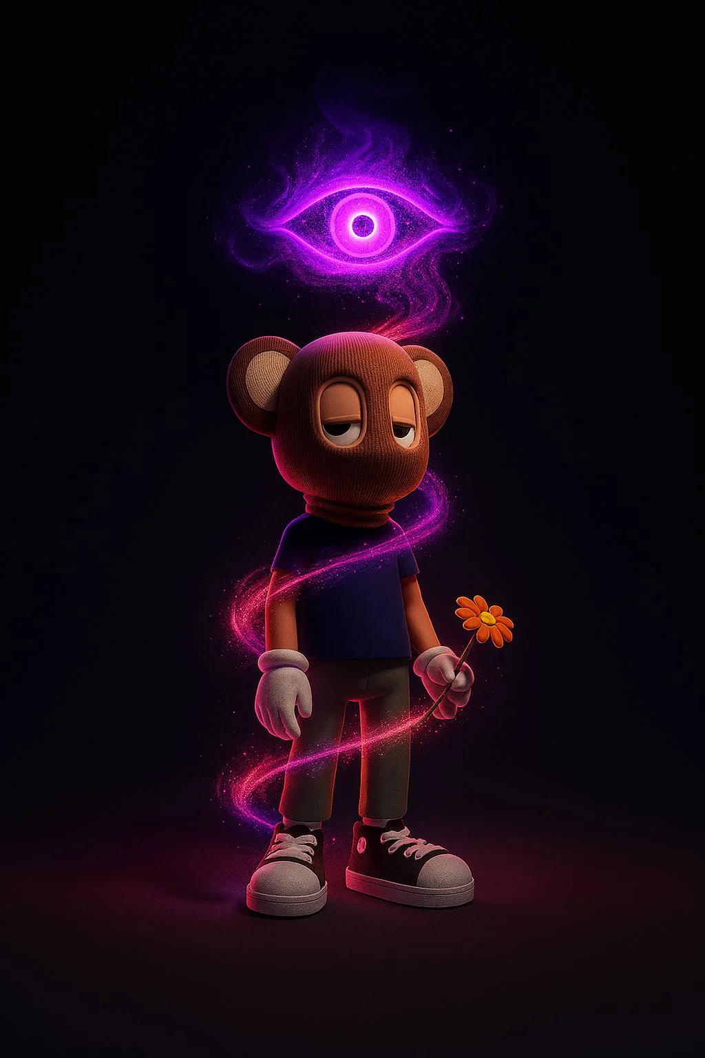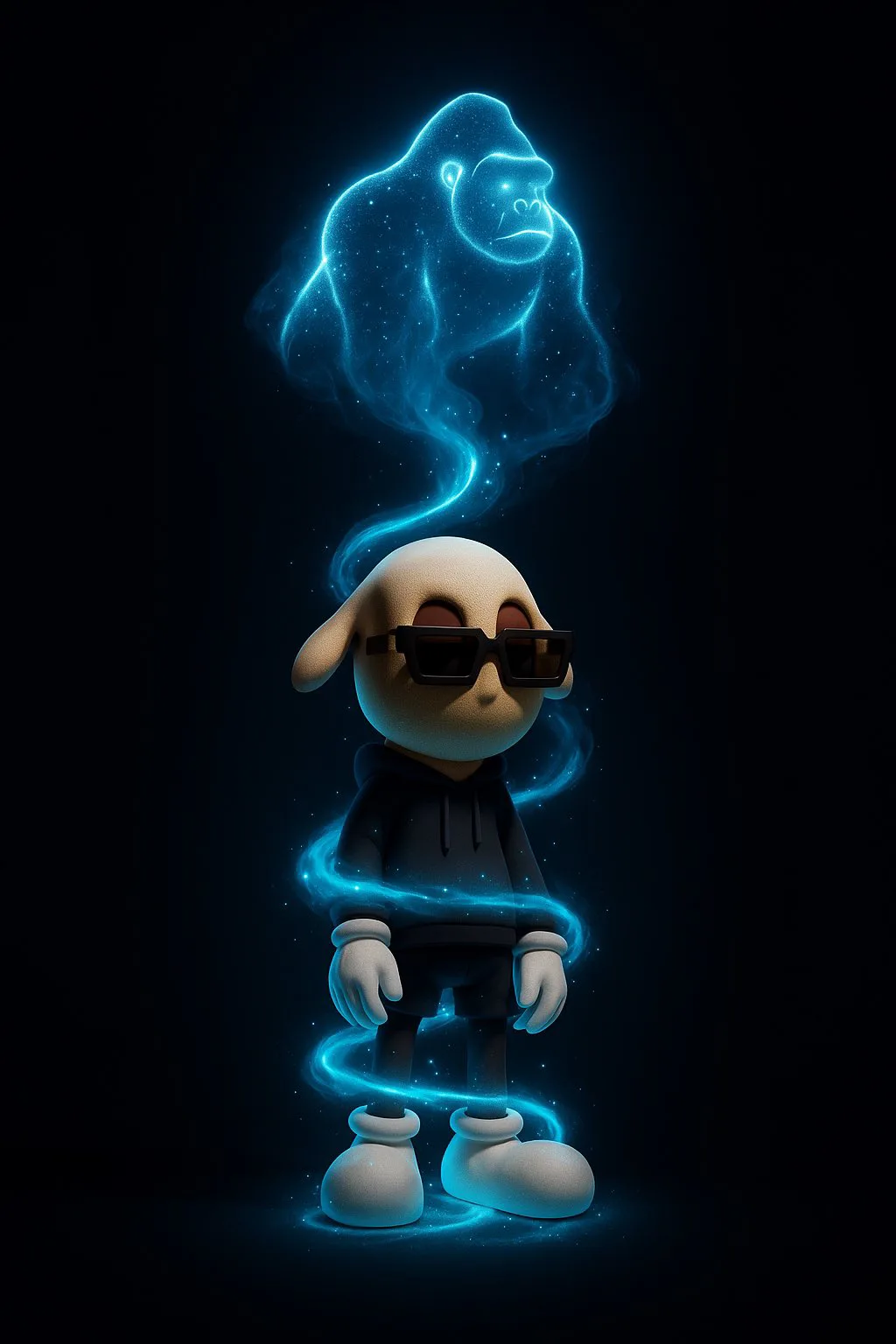 AKCB holders have always celebrated individuality. Now, creators are taking it further by generating AI-driven visuals where a luminous smoke helix rises from their Beast’s feet and morphs into a personalized shape above their head.